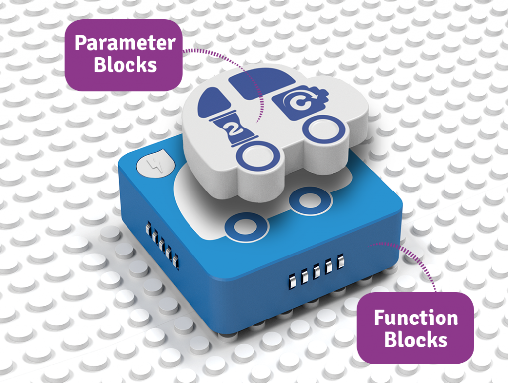 Al utilizar los bloques de función y parámetro, el alumno crea una secuencia de órdenes para